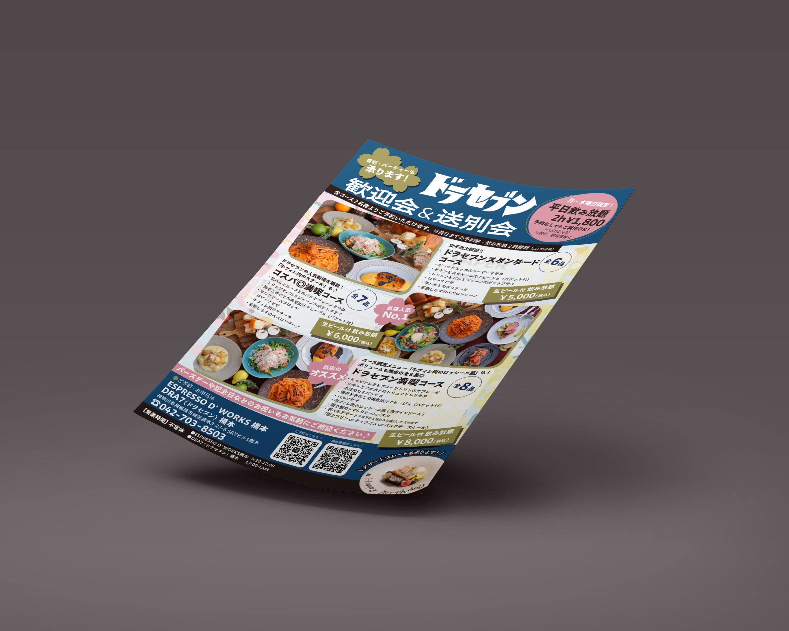チラシデザイン制作:ドラセブン歓送迎会チラシ